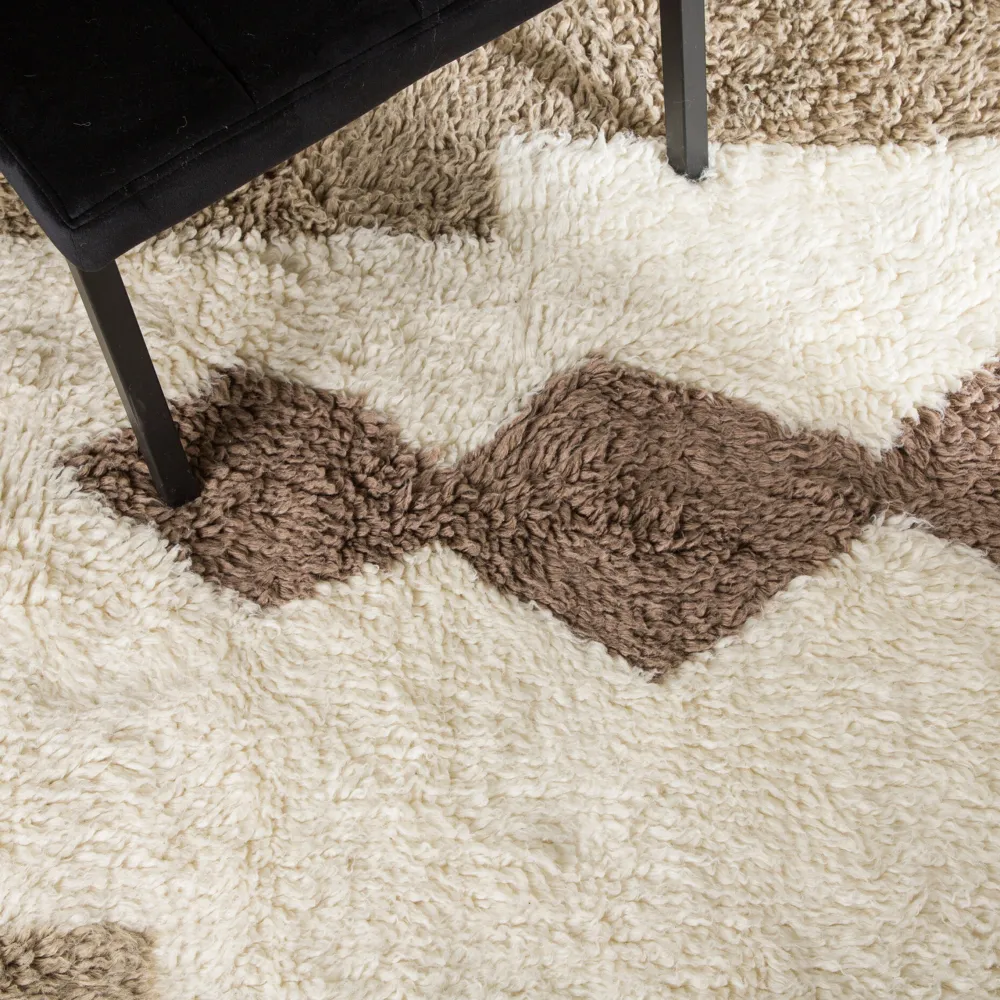 Verzorgd, gezellig en oogstrelend – een vloerkleed met iedereen gelijk gewoon! Deze wollen mat uit de Ladina serie voelt zacht en vol aan met zijn hoge pool en dichtheid die een verfijnde indruk geven aan de kamer. Het patroon is ingetogen in aardse kleuren wit, beige en bruin die gemakkelijk in de meeste huizen passen. Leg het onder de bankgroep of in de slaapkamer en verwarm je voeten op een aaibaar vloerkleed dat de kamer gezellig maakt! Afmetingen: 230×160 cm.