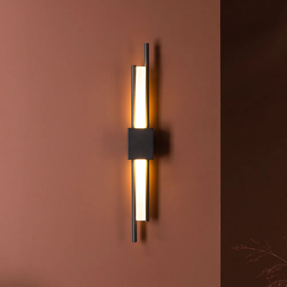De wandlamp Yusuke heeft een modern en mooi ontwerp met een zwarte beugel van ijzer en een witte acryl lampenkap. Deze l…