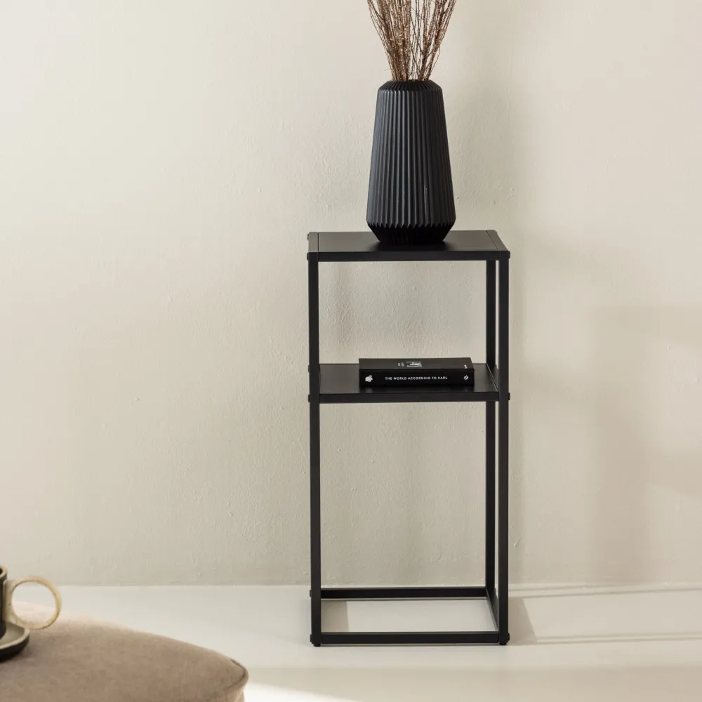 De Nels Arenas bijzettafel heeft verschillende gebruiksmogelijkheden als de verbeelding het toelaat. De hoge plank biedt royale ruimte voor je favoriete boeken, mooie decoraties of misschien je groeiende plantencollectie. Hier vind je orde en netheid voor de dingen die je bij de hand wilt hebben.