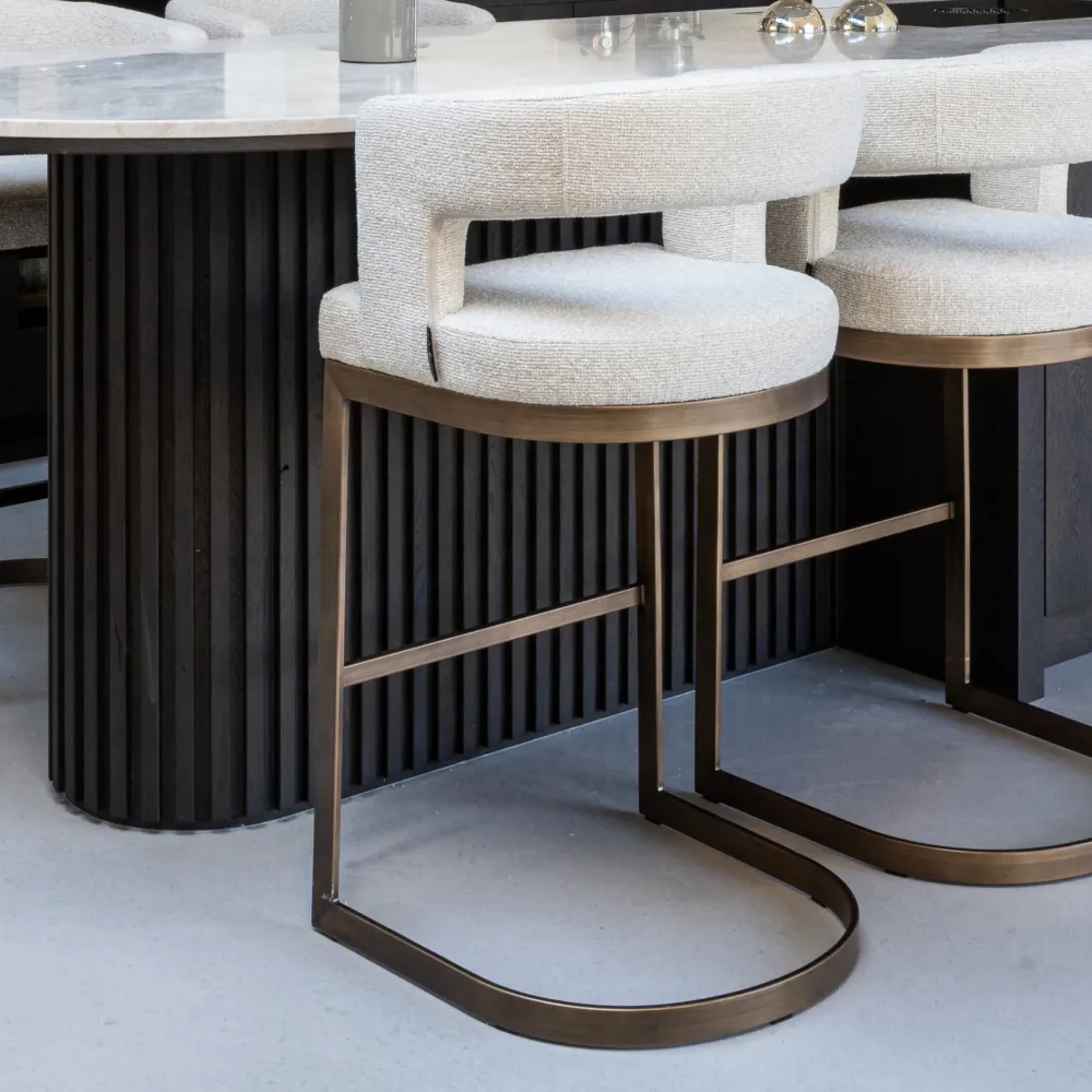 Barstoel Ellis in de prachtige stof biscotti straalt verfijning en warmte uit. Het elegante design en de zachte bekleding maken deze barstoel niet alleen comfortabel, maar ook een stijlvolle toevoeging aan elke keuken of bar. De stevige constructie zorgt voor duurzaamheid en langdurig zitplezier.