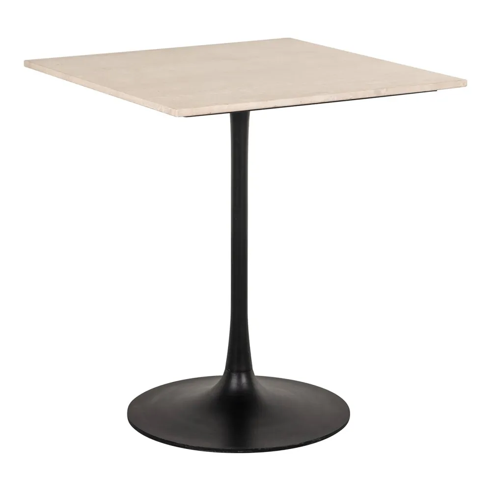 Deze stijlvolle bistrotafel combineert de verfijning van marmer met de stevigheid van ijzer. Het vierkante tafelblad, ge…