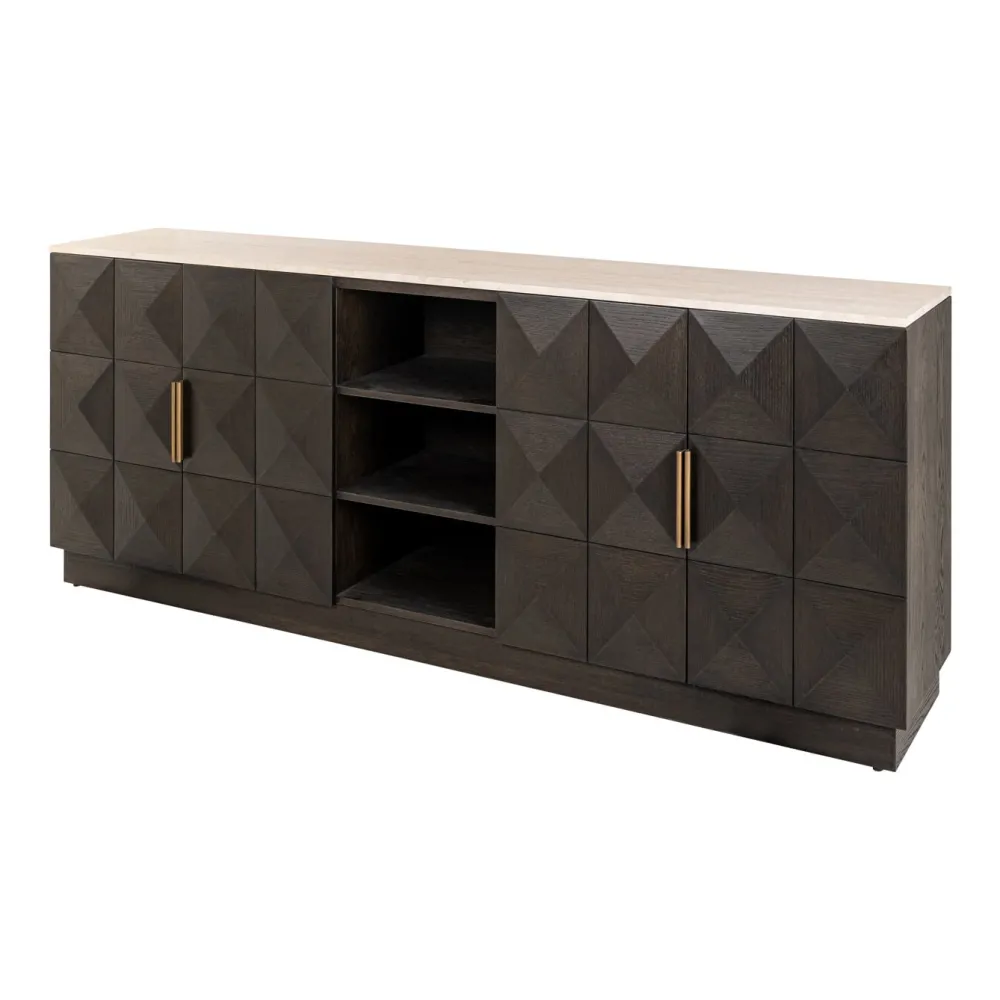 Richmond Interiors Dressoirs|Dressoir Claremont Eiken en travertin, 225cm Bruin