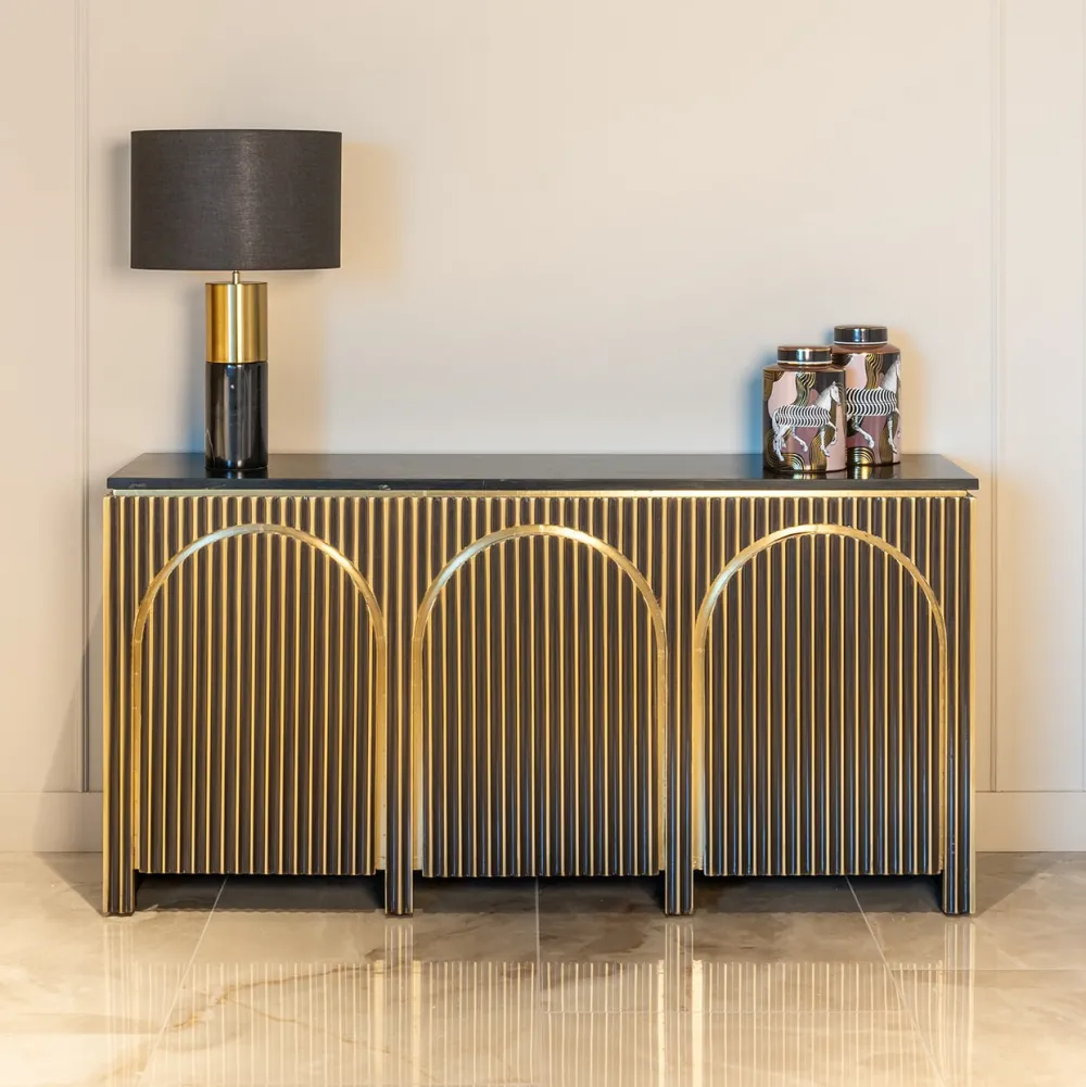 Richmond Interiors Dressoirs|Dressoir Les Arcs Brass en marmer, 160cm Brushed gold