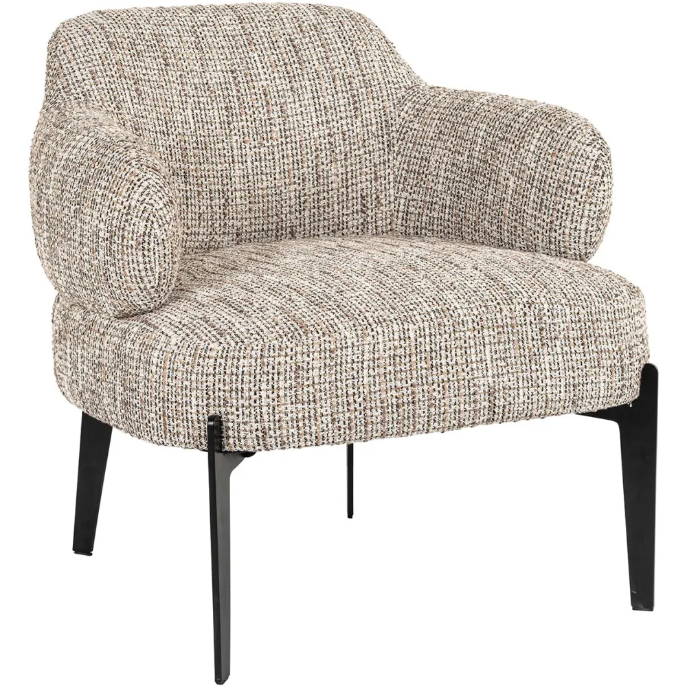 De fauteuil Venus is een stijlvolle en comfortabele zitoplossing, beschikbaar in de kleuren trendy nature en trendy rose. Het ontwerp van de stoel combineert zachte, ronde vormen met een stevige bekleding in een modern geweven patroon, wat zorgt voor een luxe en eigentijdse uitstraling. De comfortabele armleuningen en diepe zitting maken deze fauteuil ideaal om in te ontspannen. De stoel is afgewerkt met slanke metalen poten, beschikbaar in een zwarte of goudkleurige afwerking, die een elegant en modern contrast vormen met de bekleding. Fauteuil Venus is perfect voor wie op zoek is naar een stijlvolle aanvulling voor de woonkamer of slaapkamer, waarbij comfort en design hand in hand gaan.