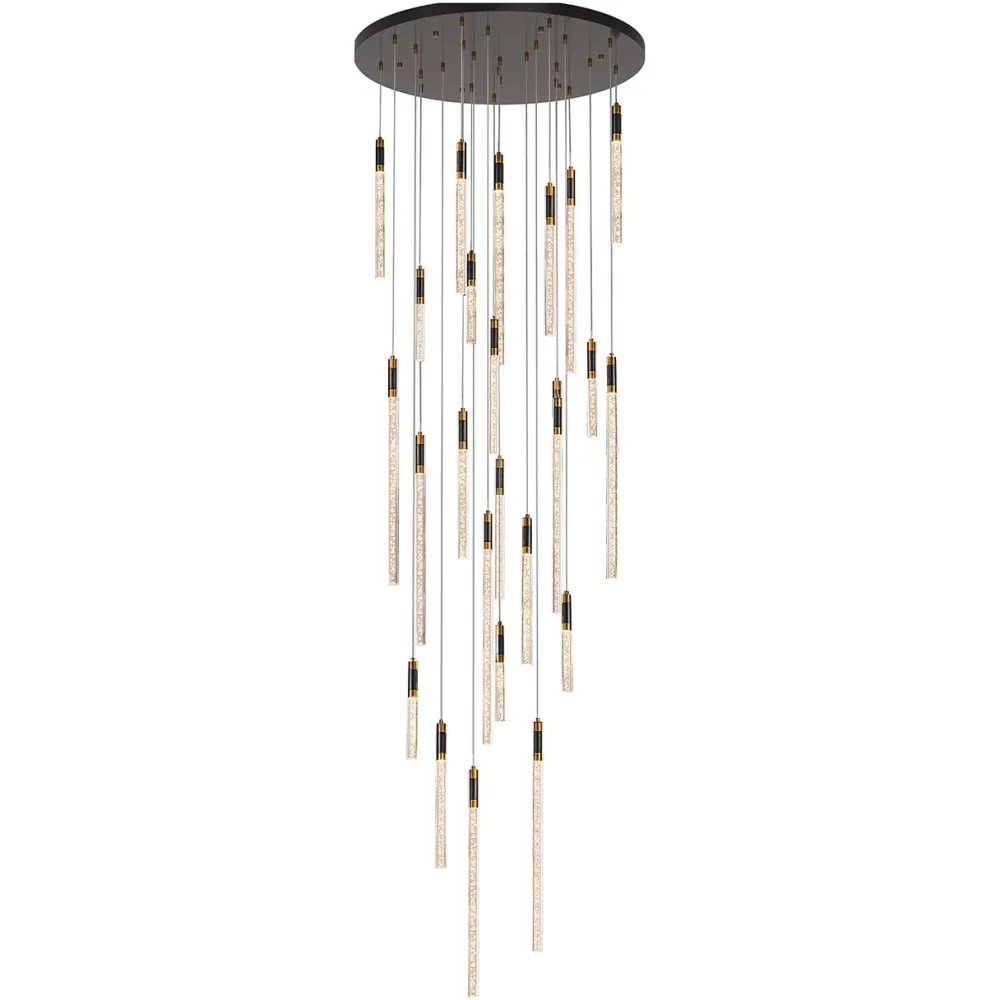 De hanglamp Crosley is een indrukwekkend en luxueus verlichtingselement dat elke ruimte transformeert met zijn opvallende design. Deze lamp bestaat uit meerdere slanke lichtbuizen die elegant van het plafond naar beneden hangen, waardoor een schitterend lichtspel ontstaat. De combinatie van moderne materialen en verfijnde afwerking zorgt voor een stijlvolle uitstraling, ideaal voor een hoog plafond in bijvoorbeeld een entreehal of boven een eet- of zithoek. Crosley voegt niet alleen licht toe, maar fungeert ook als een statement piece dat de aandacht trekt en de ambiance van de ruimte naar een hoger niveau tilt.