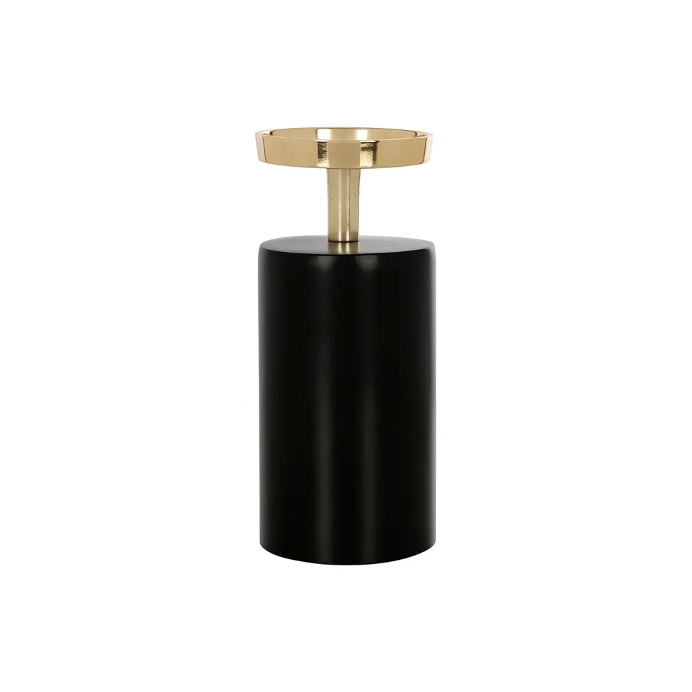 Deze stijlvolle kandelaar is vervaardigd uit hoogwaardig aluminium en afgewerkt in een elegante zwarte tint met verfijnde gouden details. Het tijdloze ontwerp maakt het een perfecte aanvulling voor diverse interieurstijlen. Voor wie op zoek is naar een prominenter formaat, is de Caya kandelaar ook verkrijgbaar in een grotere variant. Ideaal voor zowel alledaags gebruik als speciale gelegenheden.