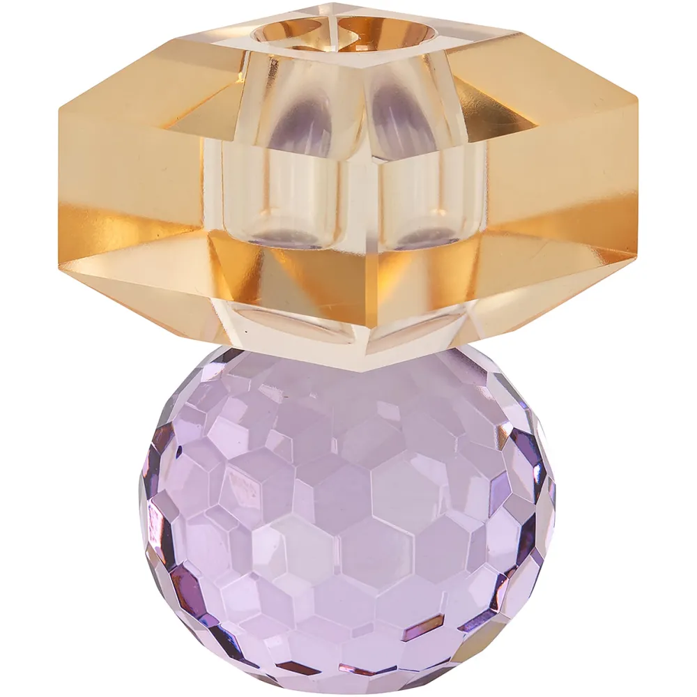 Kandelaar Mirne, vervaardigd uit glas, is een verbluffend stuk vakmanschap dat kunst en functionaliteit samenbrengt. Het prachtige oranje en paarse kleurenspel vangt het licht op unieke wijze, waardoor het een betoverende gloed verspreidt wanneer er een kaars in brandt. Dit stijlvolle decorstuk voegt niet alleen sfeer toe aan elke ruimte, maar dient ook als een opvallend gespreksonderwerp.