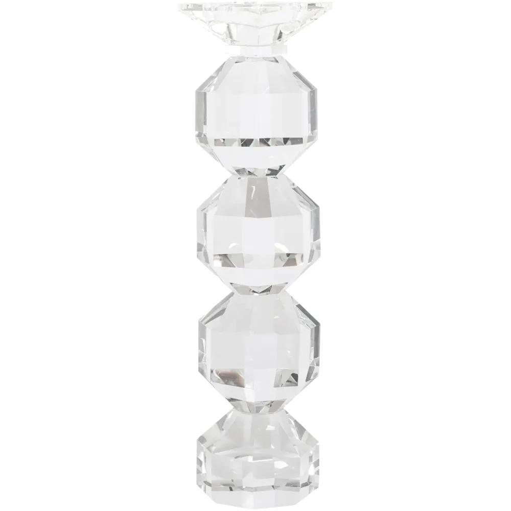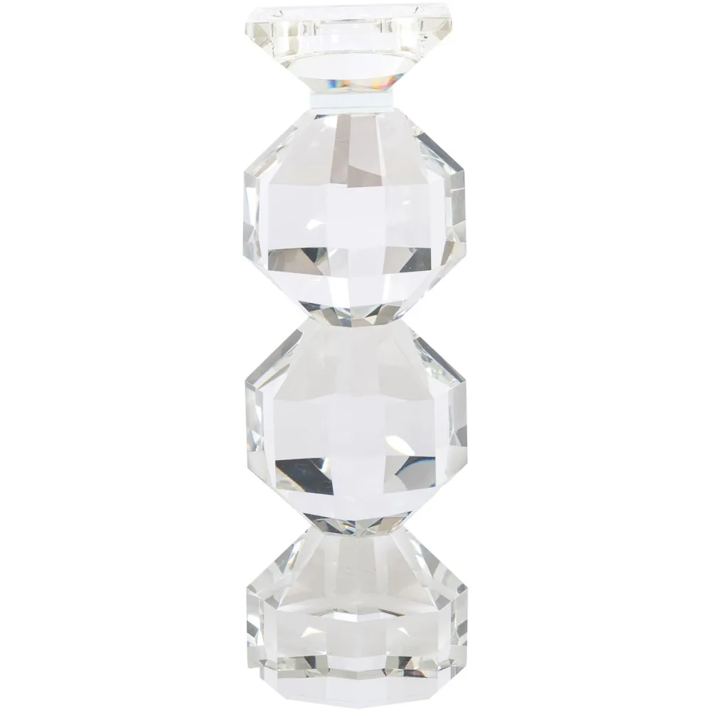 De kandelaar Safia voegt een vleugje luxe en elegantie toe aan elke ruimte. Met zijn schitterende, facettenrijke ontwerp vangt Safia het licht op een betoverende manier, wat zorgt voor een sprankelende en sfeervolle ambiance. Deze kandelaar is verkrijgbaar in zowel een klein als groot formaat, waardoor hij zich perfect leent voor verschillende interieurs en gelegenheden. Of je nu een romantische setting wilt creëren of een feestelijke tafeldecoratie wilt accentueren, Safia brengt een tijdloze glans en verfijning in je interieur.