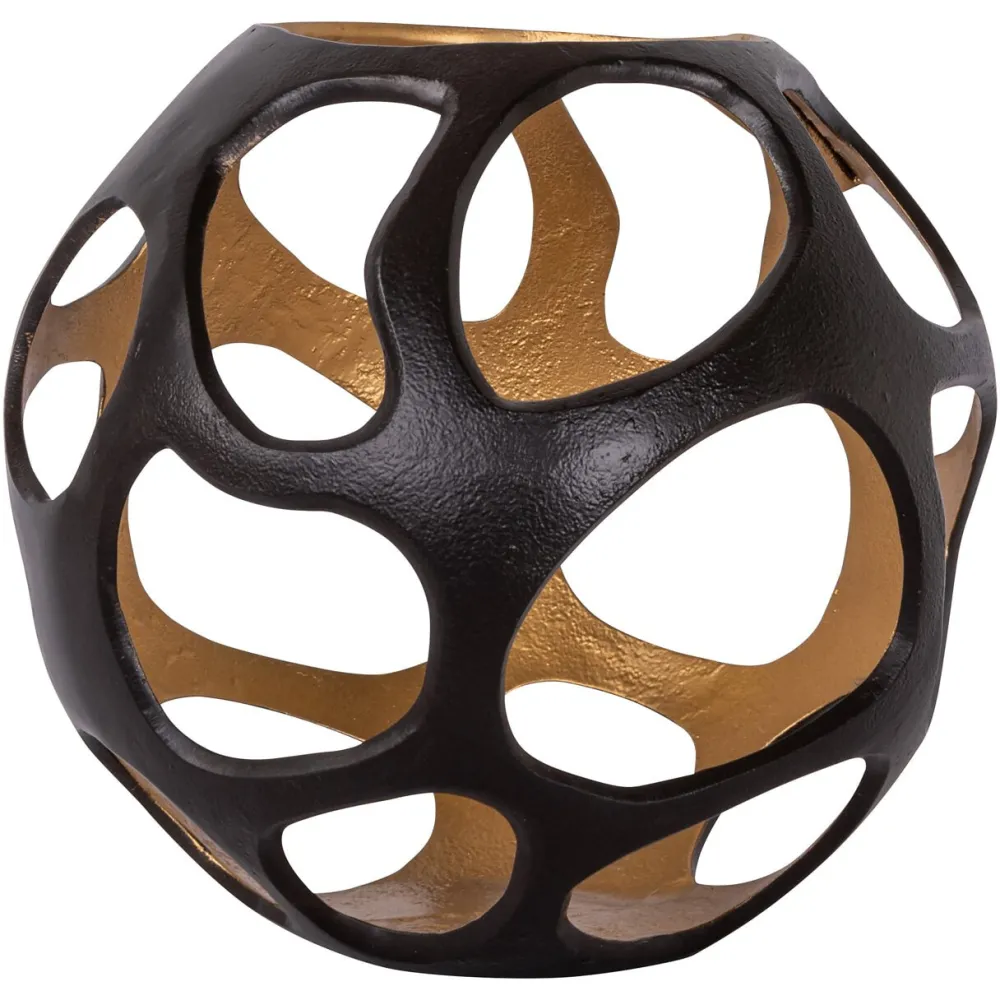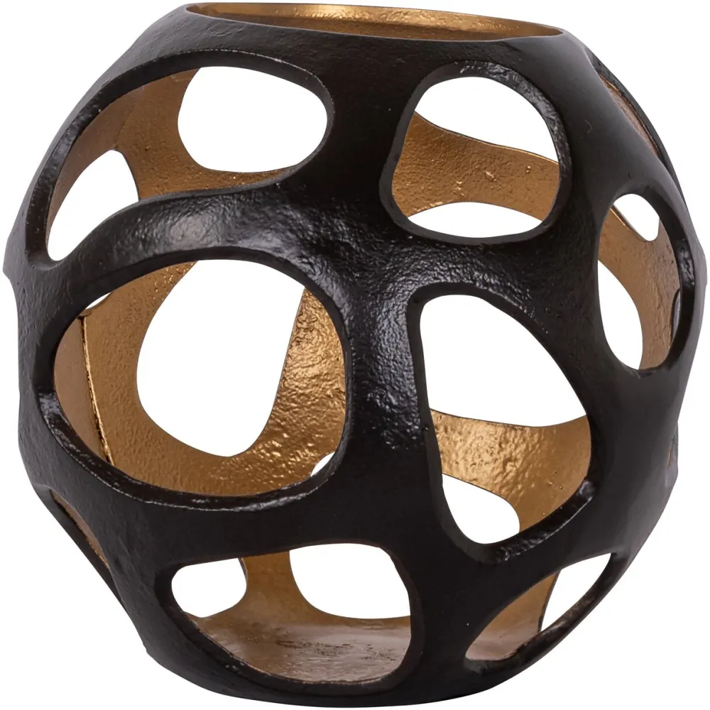 Windlicht Alysia small heeft dezelfde sculpturale uitstraling in een compacter formaat. Een moderne kandelaar met sterk decoratief karakter.