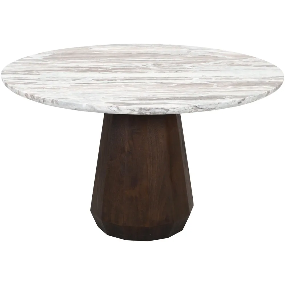 Richmond Interiors Marmeren Eettafel|Ronde Eettafel|Ronde Eettafel Oberoy Marmer en mangohout, 130cm Bruin