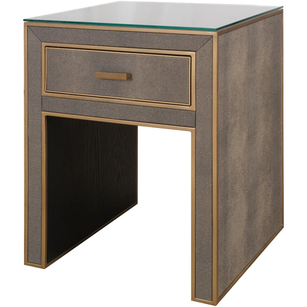 Het nachtkastje Bloomville met één lade straalt klasse uit door het gebruik van premium PU-leer, een glazen blad en ve…