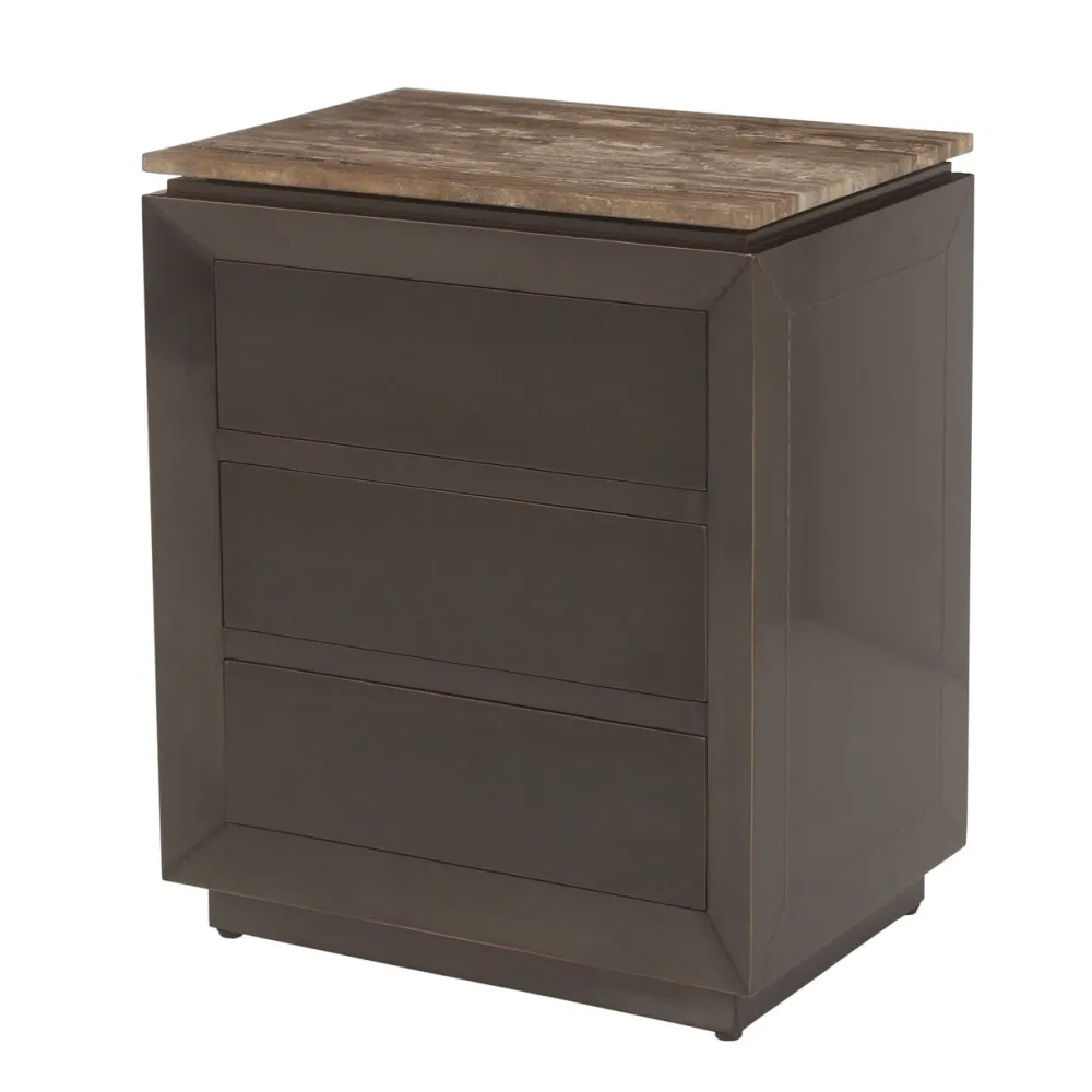 Richmond Interiors Nachtkastjes|Nachtkastjes|Nachtkastje Russo Travertin en brass, Met 3 lades Bruin