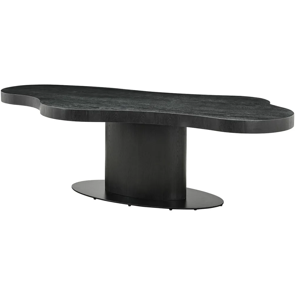 De Bogor eettafel is vervaardigd uit eikenfineer en multiplex, wat zorgt voor een stevige en duurzame constructie. De tafel heeft een organisch gevormd blad dat een unieke en moderne uitstraling aan je eetruimte geeft. Verkrijgbaar in de maten 225 cm en 260 cm, biedt deze tafel voldoende ruimte voor diners en samenkomsten. De donkere afwerking van het eikenfineer benadrukt de natuurlijke houtnerf en voegt een stijlvolle, eigentijdse sfeer toe aan elk interieur.