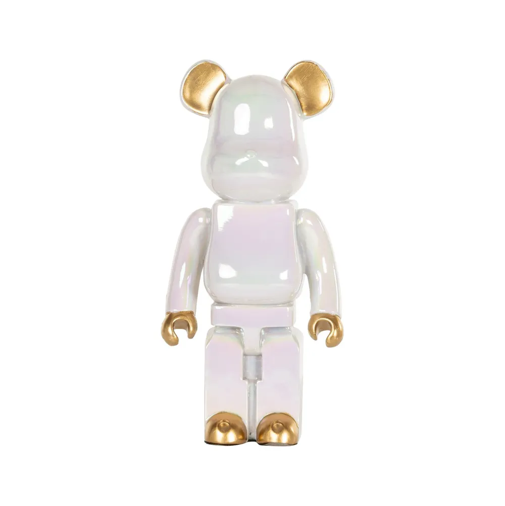 De Ave is een eigentijds en stijlvol decoratieobject dat direct in het oog springt. Dit kunstwerk, vormgegeven als een moderne, abstracte beer, combineert glanzend wit met gouden accenten op de oren, handen en voeten, wat het een luxe uitstraling geeft. De iriserende afwerking van het wit zorgt voor een subtiele regenboogglans die afhankelijk van het licht steeds weer nieuwe tinten onthult. Ave is een prachtig stuk om toe te voegen aan elke ruimte, of het nu als speels element in de woonkamer, een stijlvol accent in de slaapkamer of een opvallende eyecatcher op kantoor is. Dit decoratieobject brengt een unieke mix van modern design en artistieke flair in je interieur.