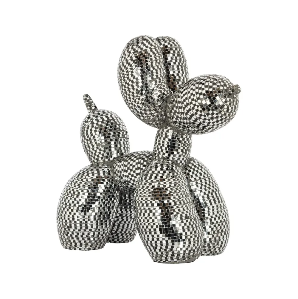 Dit decoratieve object heeft de vorm van een hond en is voorzien van een spiegeloppervlak. Hoewel het niet als een tradi…