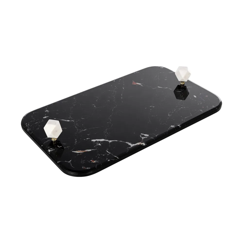 Ontmoet het verfijnde Yaya dienblad, een stijlvol ontwerp gemaakt van hoogwaardig glas en voorzien van een uniek marmerm…