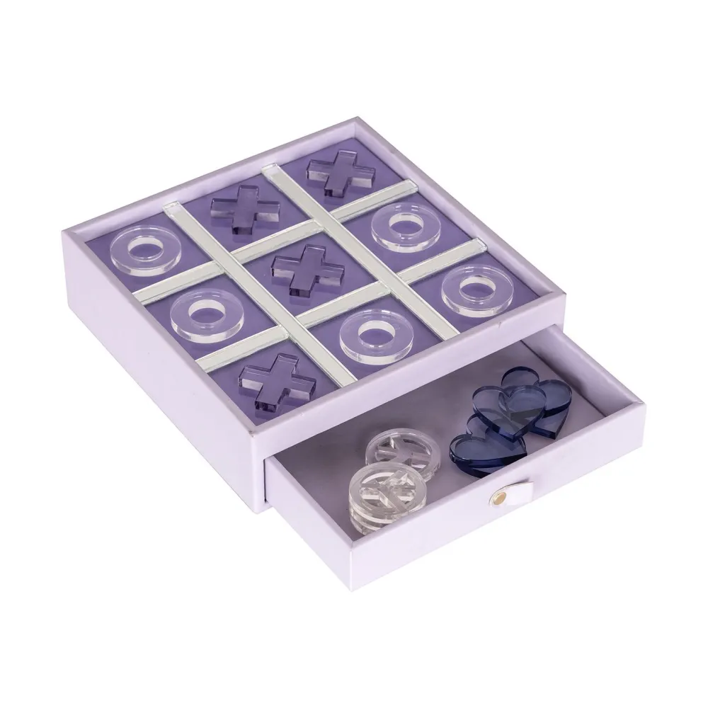 Tic Tac Toe “Jay” is een elegant en functioneel decoratieobject dat zowel esthetisch als speels is. Uitgevoerd in subtiele paarstinten, biedt dit klassieke spel een stijlvolle manier om even te ontspannen of om een speelse sfeer toe te voegen aan je interieur. Het bord bevat een handig opberglade voor de speelstukken, wat het perfect maakt om netjes en georganiseerd te blijven. De combinatie van kruisen en cirkels in een moderne, transparante afwerking zorgt ervoor dat “Jay” niet alleen een leuk spel is, maar ook een verfijnde toevoeging aan elke ruimte, zoals de woonkamer, studeerkamer of kantoor.