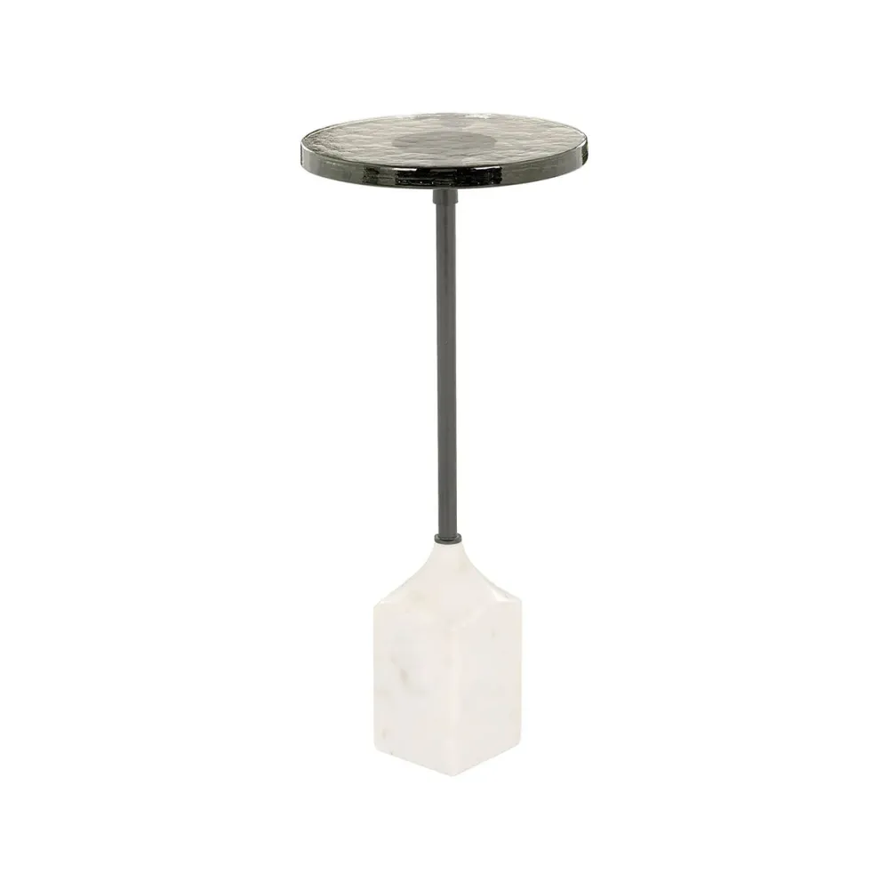 | Materiaal: | Glazen blad, ijzeren poot en marmeren voet |