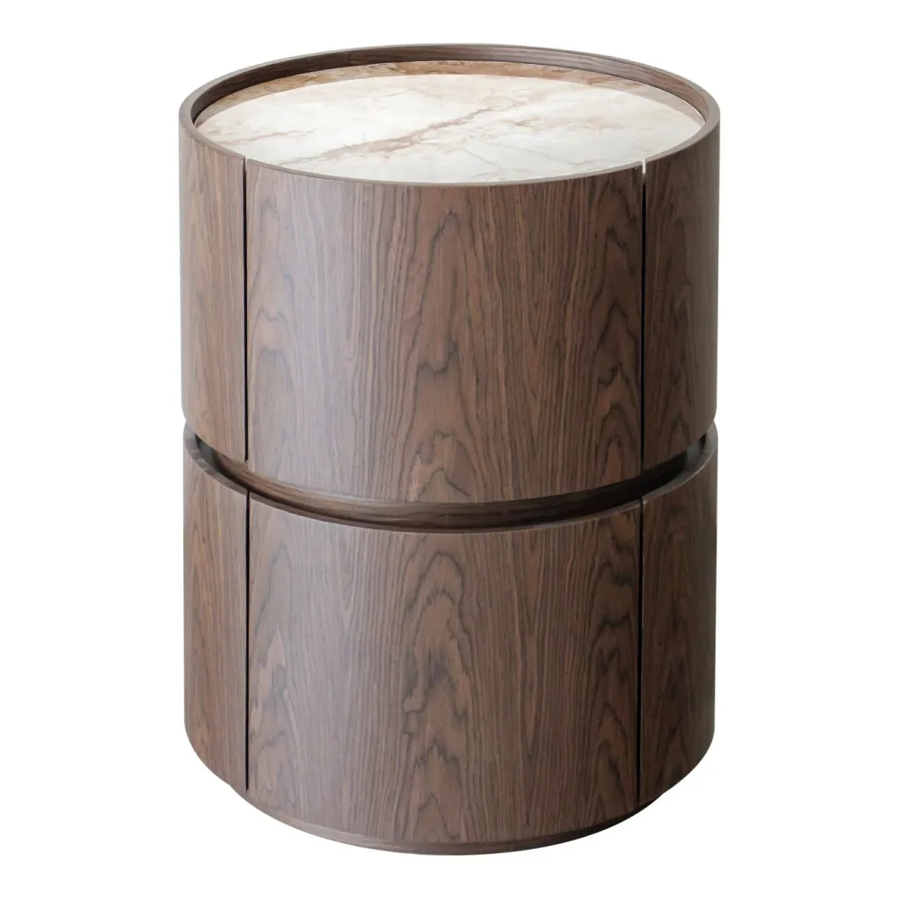 Richmond Interiors Ronde Bijzettafel|Ronde Bijzettafel Ellery Keramiek, Met 2 lades, 50cm Bruin