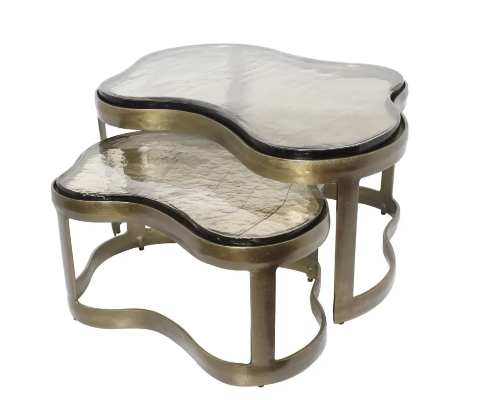 Richmond Interiors Salontafel Set|Glazen Salontafel|Organische Salontafel Fairfield Glas en Brass Antique, Set van 2 stuks