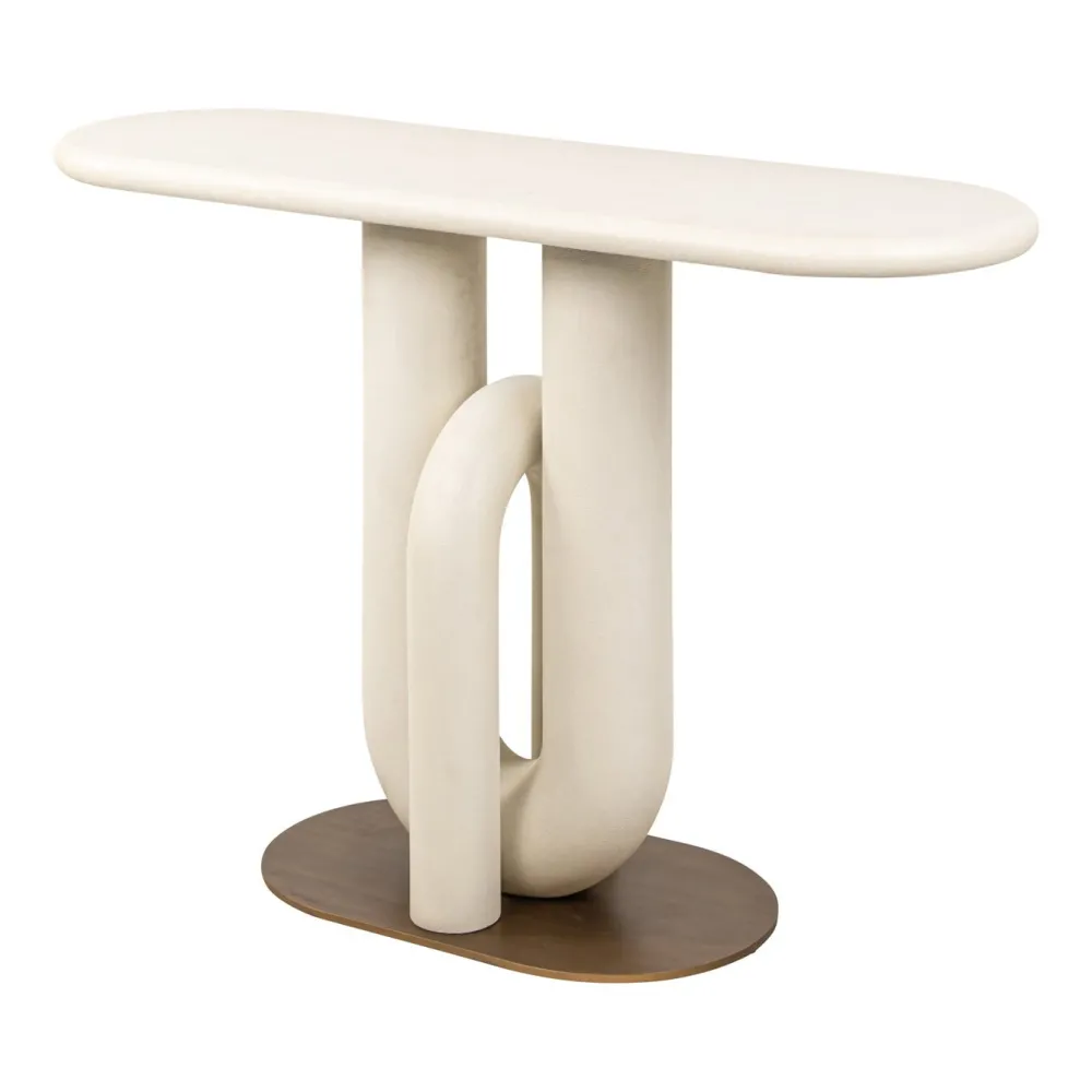 Console Winslow heeft dezelfde elegante vorm als de eettafel, maar dan in compact formaat. Een veelzijdig meubel dat zachtheid en stijl toevoegt aan elke hal of woonruimte.