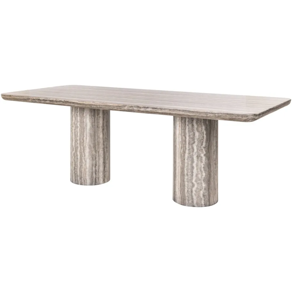 Richmond Interiors Travertin Eettafel|Rechte Eettafel|Eettafel Nebula Marmer en travertinlook, 225 x 100cm Grijs