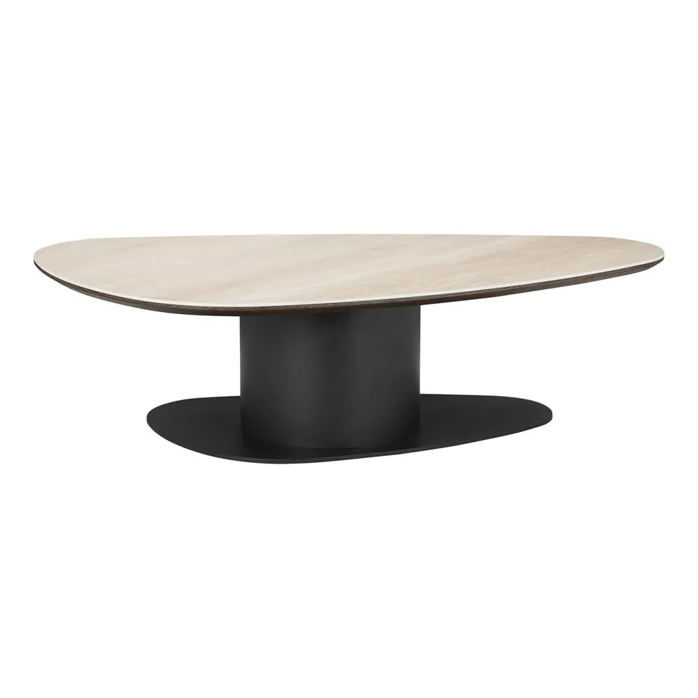 Richmond Interiors Travertin Salontafel|Organische Salontafel|Organische Salontafel Ritz Travertin en eiken, 140 x 75cm Beige