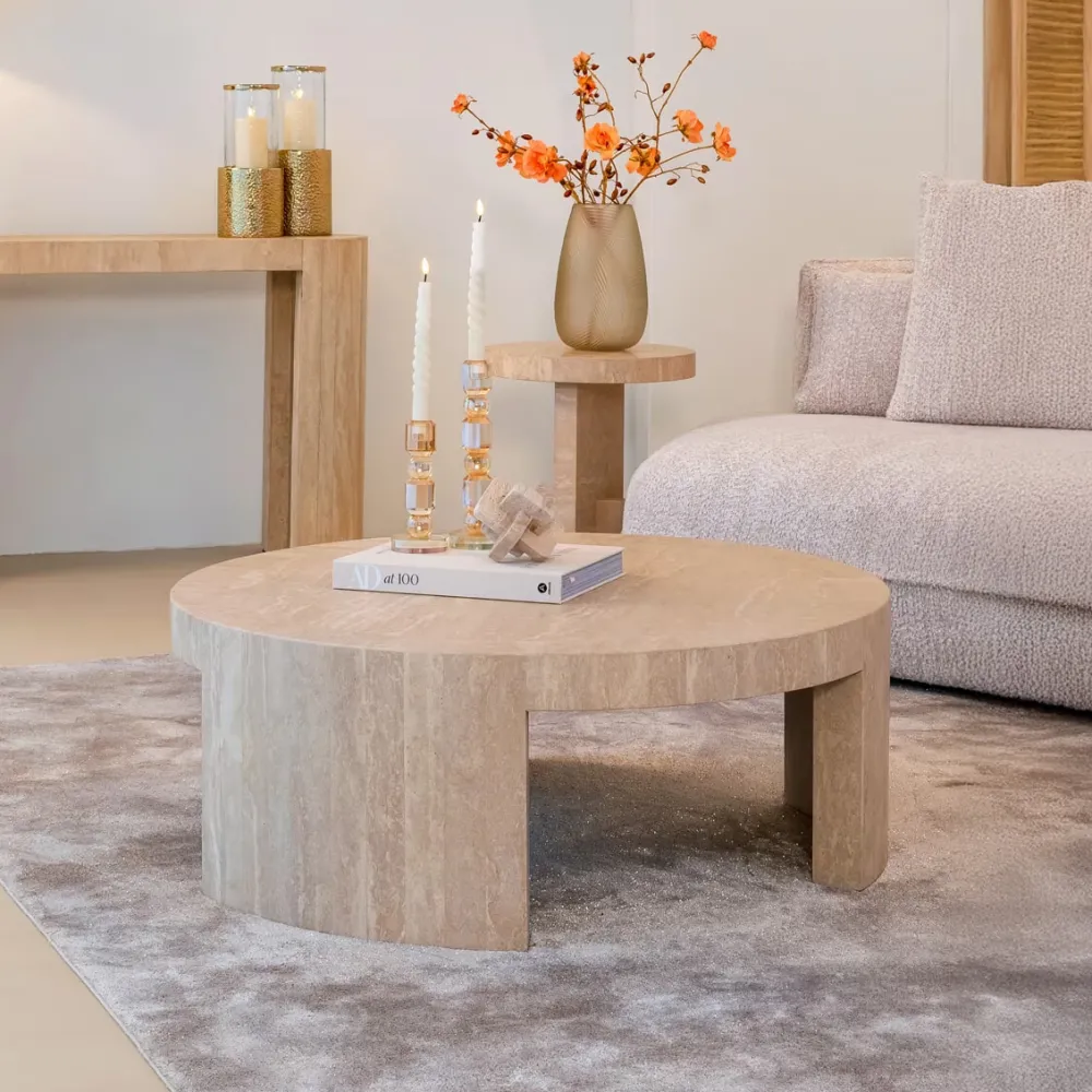 Richmond Interiors Travertin Salontafel|Ronde Salontafel|Ronde Salontafel Biltmore Travertin, 100cm Beige