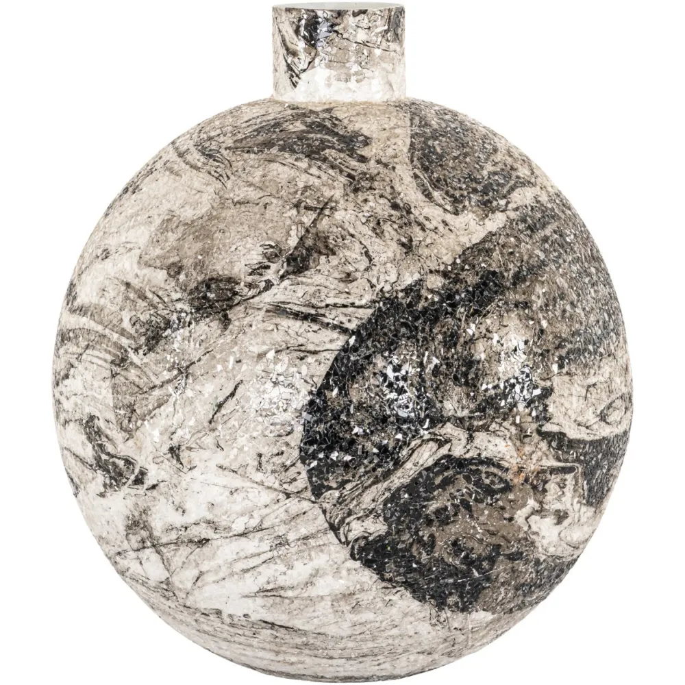 Vaas Delisha valt op door zijn grafische zwart-witte patroon en eigentijdse ronde vorm. Een gedurfd statementstuk met artistieke flair.