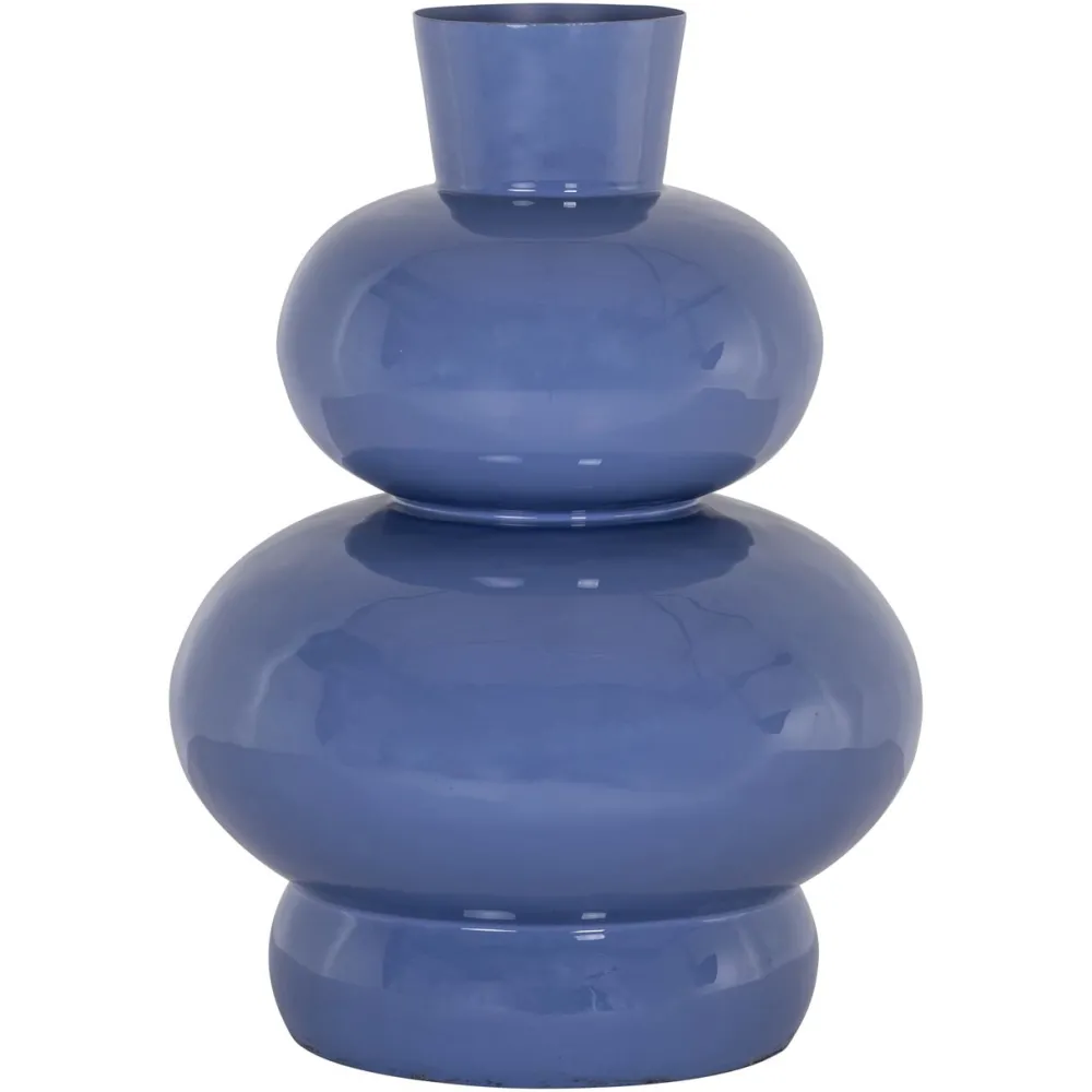Vaas Moisa is ontworpen met gestapelde ronde vormen en een levendige very peri afwerking. Een vrolijk en gedurfd stuk dat elke hoek opfleurt.