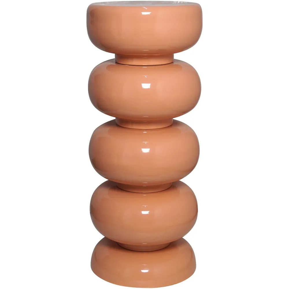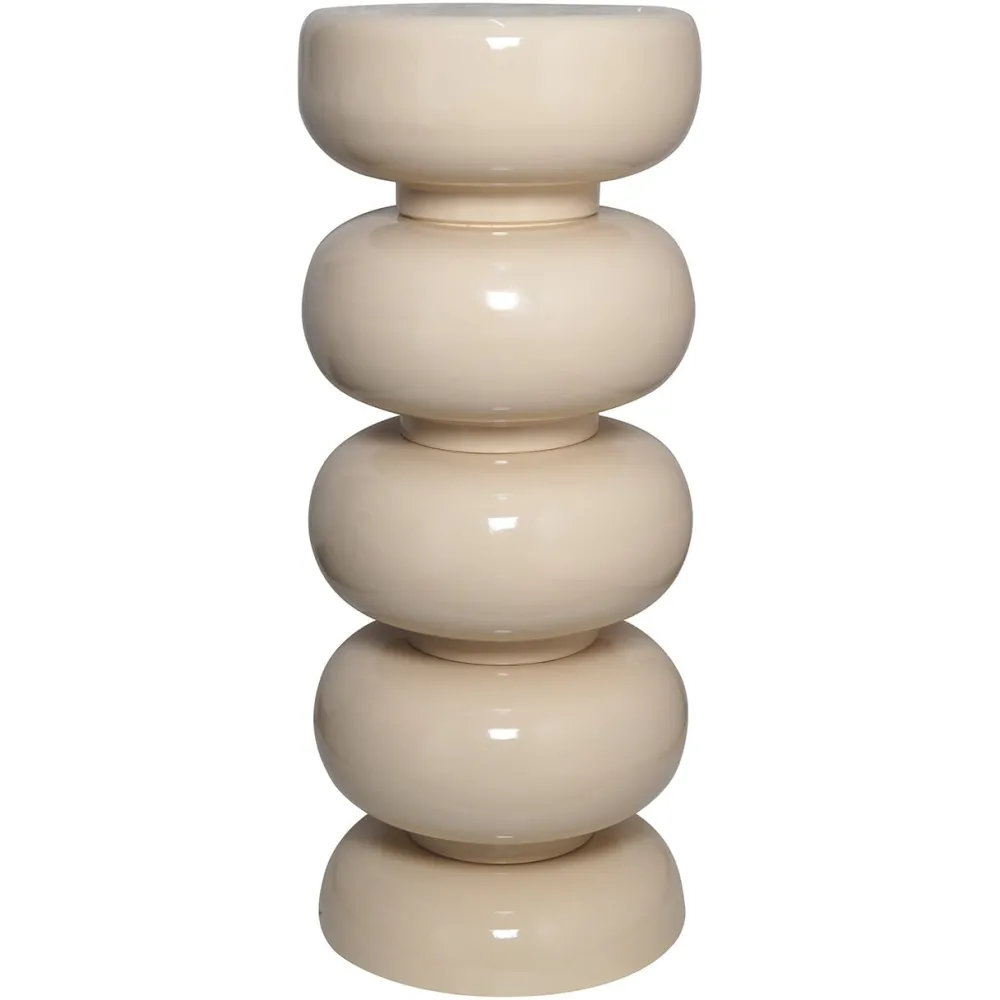 De Jari pilaar in beige is een stijlvol en opvallend meubelstuk, vervaardigd uit ijzer. Het ontwerp bestaat uit meerdere ronde, gestapelde vormen die samen een sculpturale en moderne uitstraling creëren. De glanzende beige afwerking geeft de pilaar een elegante en verfijnde look, terwijl het stevige ijzeren materiaal zorgt voor duurzaamheid en stabiliteit. Deze pilaar is perfect als decoratief element in verschillende interieurstijlen en kan dienen als sokkel voor kunstwerken, planten of andere decoratieve items. De Jari pilaar voegt een vleugje moderne kunst toe aan elke ruimte.