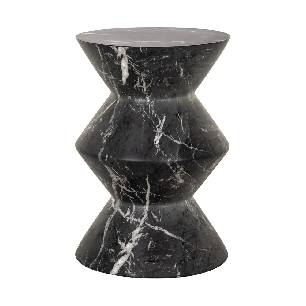 De Bosco bijzettafel is gemaakt van faux marmer, wat zorgt voor een luxe uitstraling zonder het zware gewicht van echt marmer. Het tafelontwerp heeft een opvallende, sculpturale vorm met gelaagde details die een modern accent toevoegen aan je interieur. De donkere marmerlook maakt deze bijzettafel een stijlvol en veelzijdig stuk dat zowel functioneel als decoratief ingezet kan worden in verschillende ruimtes.