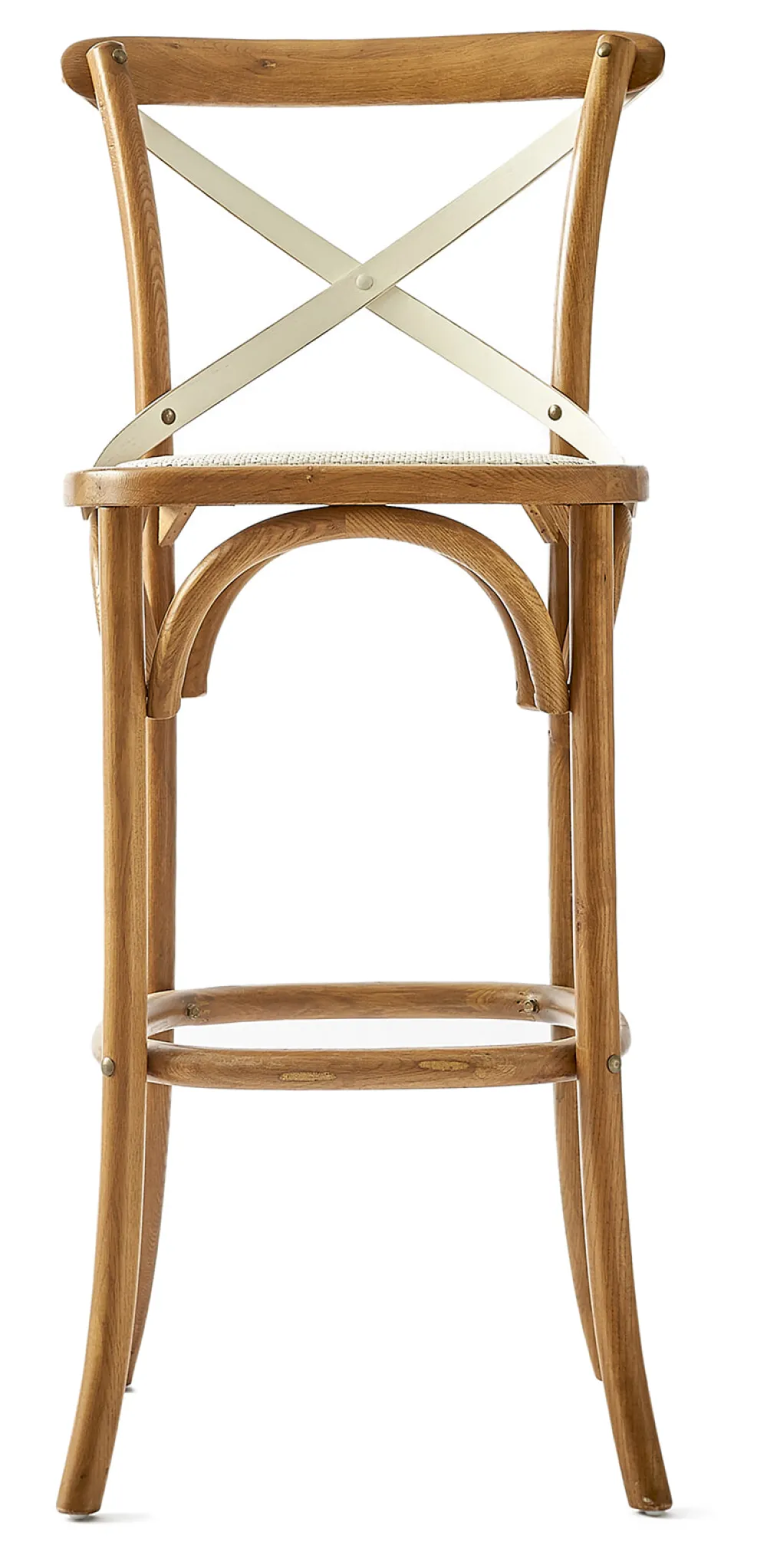 Eikenhouten barstoel met gekruiste rugleuning en geweven zitting, voor extra comfort is er een bijpassend zitkussen verkrijgbaar.