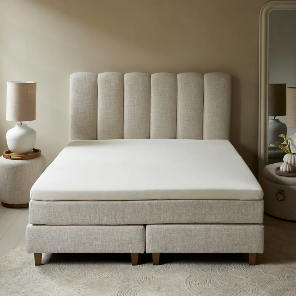 Beleef uitzonderlijk comfort en verfijnde luxe met de Dazzle boxspring. Het elegante gemêleerde ontwerp en de kenmerkende banen uit de Dazzle collectie brengen een stijlvolle, tijdloze sfeer in je slaapkamer. Naast zijn prachtige uitstraling, biedt deze boxspring ultiem ligcomfort, waardoor je elke nacht geniet van diepe ontspanning. Word fris wakker in een bed dat comfort en klasse perfect samenbrengt. Met de Dazzle boxspring wordt jouw nachtrust een dagelijks moment van luxe. *Inclusief hoofdbord