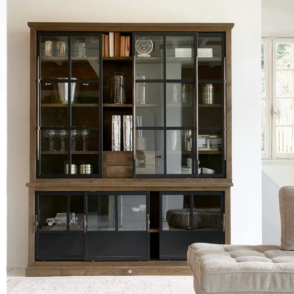 De Hoxton is een industriële kast gemaakt van gerecycled essenhout in combinatie met zwartgekleurd ijzer en glazen pane…