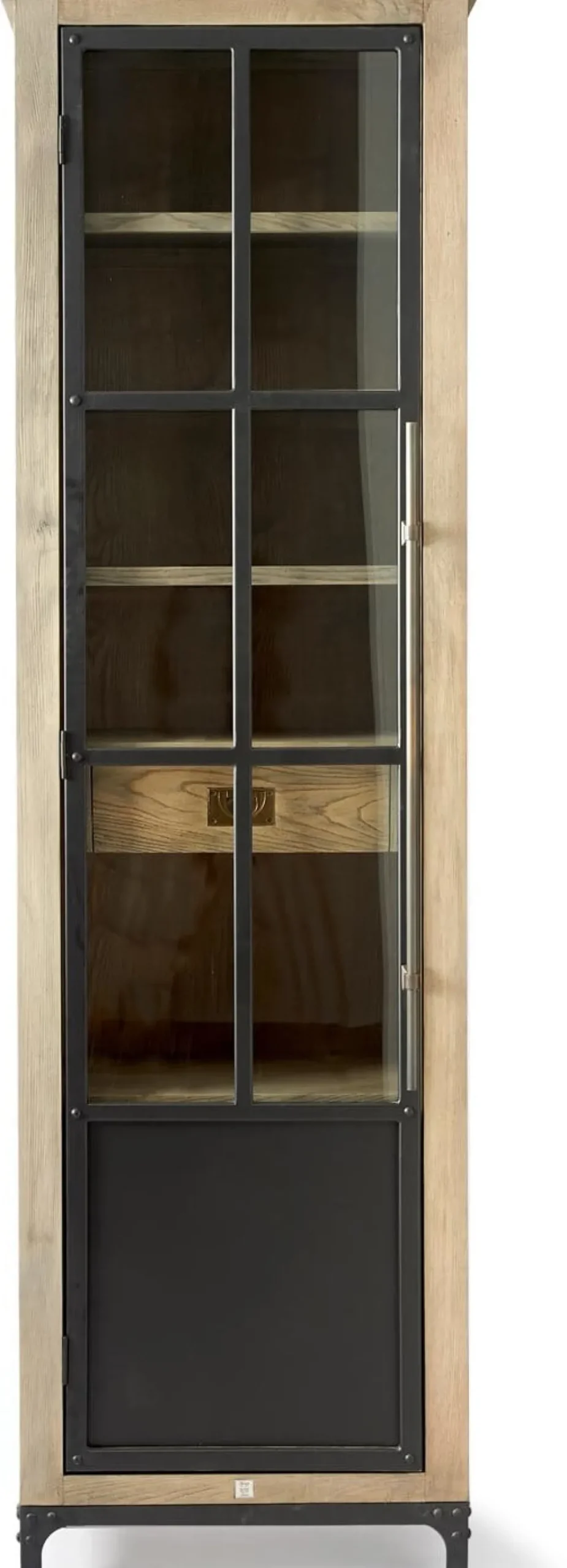 Met deze prachtige smalle buffetkast haalt u een echte blikvanger in huis. De combinatie van gerecycled essenhout en het robuuste staal werkt perfect samen en lijkt een match made in heaven. De kast kan zowel in een industrieel interieur als in een klassieker interieur en komt in beide gevallen waanzinnig goed tot zijn recht. Met openklapbare deur, planken en een lade.