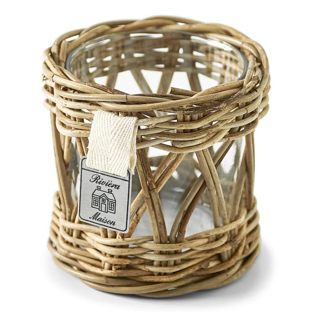Rivièra Maison Kaarshouders & Windlichten|Windlicht Votive Rotan en glas Brown