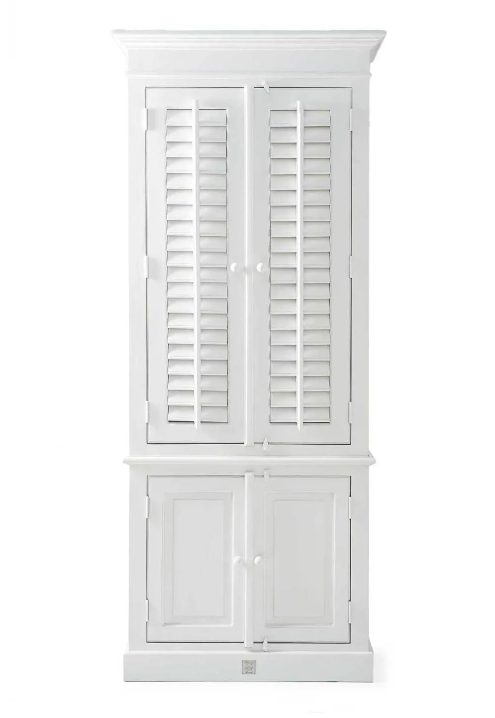 New Orleans is de grootste stad van de Amerikaanse staat Louisiana. De stad ligt aan de oevers van de rivier de Mississippi. Deze fris witte garderobekast van acaciahout is een mooie, ruime kast met beweegbare shutters. De bovenste helft biedt één vaste plank, een roede en twee verplaatsbare planken, en achter de onderste deuren bevinden zich nog drie planken.