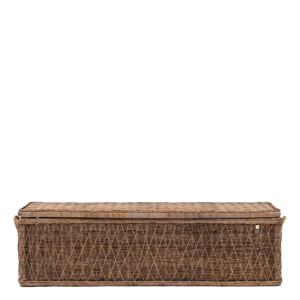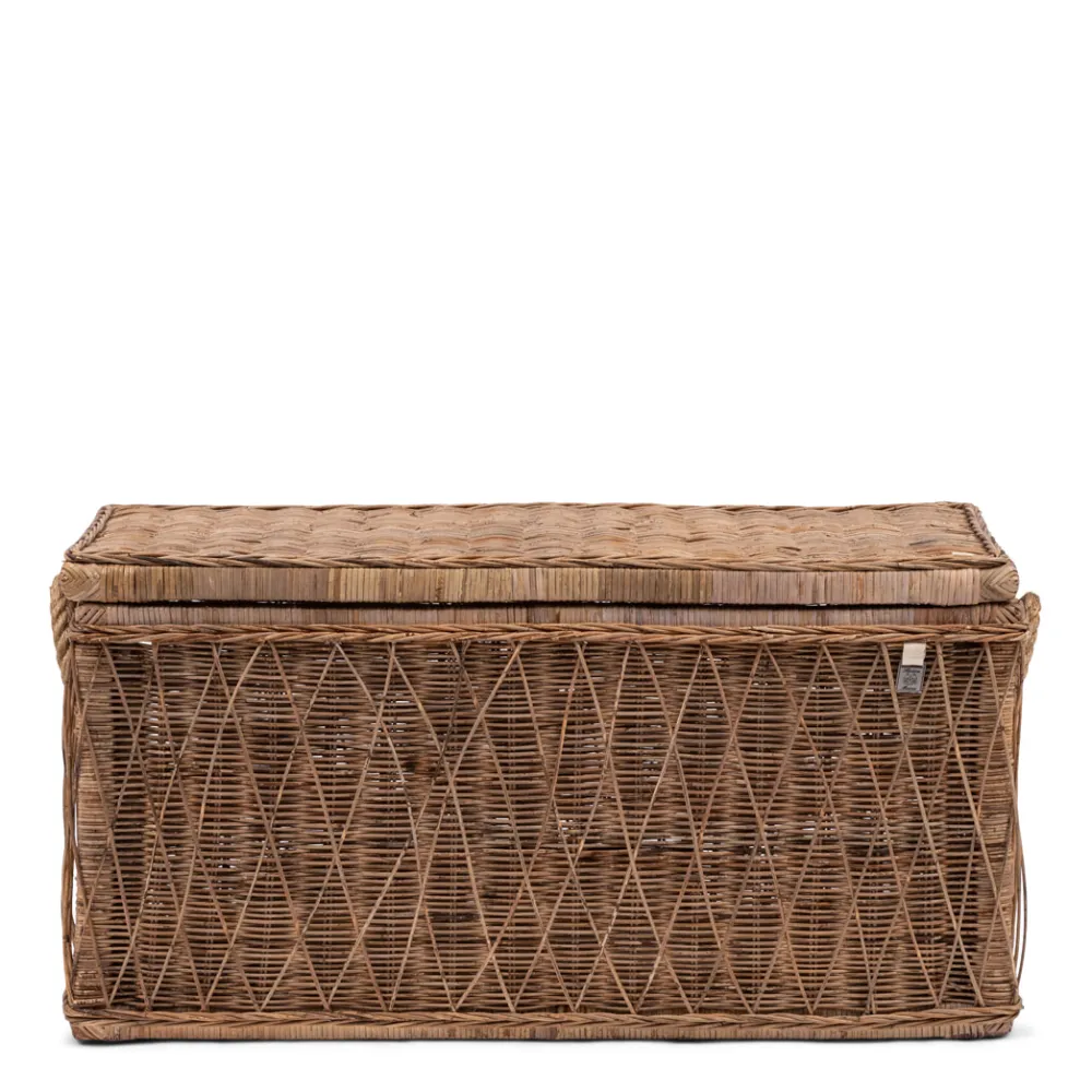 Omdat het rattan in de Nusa Dua trunks met de hand is gevlochten, is geen van de opbergmanden hetzelfde. Aan de buitenkant is een diagonaal patroon van het rattan slimit gevlochten en hierdoor krijgt de kist, die overigens ook goed als salontafel te gebruiken is, een driedimensionaal effect. De Nusa Dua trunk is verkrijgbaar in twee verschillende formaten.