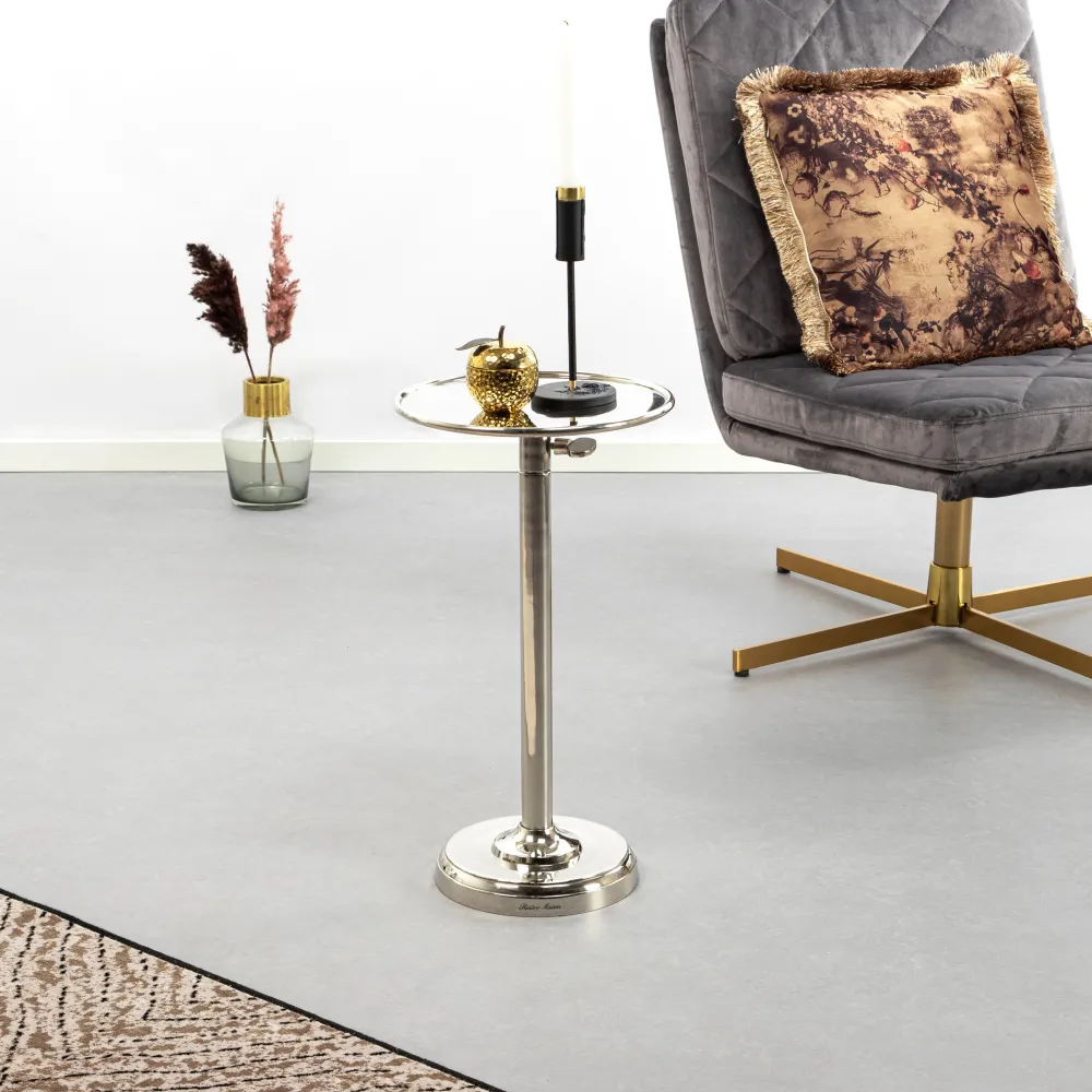 Geniet van een goed boek op de chaise longue of van een gezellige avond film kijken op de bank. Een heerlijke kop koffie met een versnapering erbij, of tijd om een goeie fles wijn open te trekken. Deze stijlvolle bijzettafel komt daarbij goed van pas en schuift u eenvoudig aan. Ideaal, want hij is ook nog eens in hoogte verstelbaar. Het materiaal doet stoer en stijlvol aan, het aluminium is goed te combineren in elke setting.