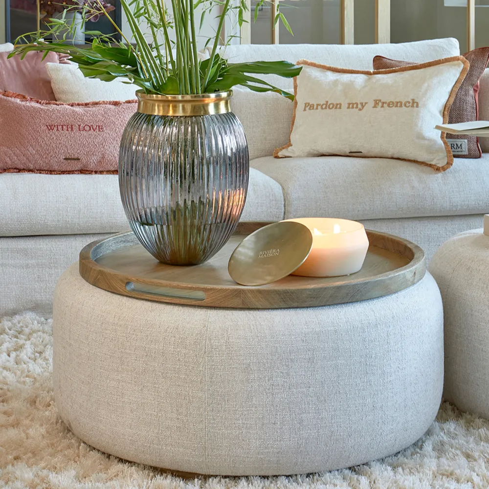 Wat een eyecatcher! De multifunctionele salontafel Babylon van Rivièra Maison is heel veelzijdig, zet hem in als poef, koffietafel of voetsteun. Schakel eenvoudig tussen ontspannen en entertainen. De prachtige Rich tweed stof in de kleur Antique white geeft deze beauty een chique look! Met een afmetingen van 91×43 cm past deze pouf met zijn prachtig doorleefde iepenhouten tray met opstaande rand perfect in elke woonkamer.