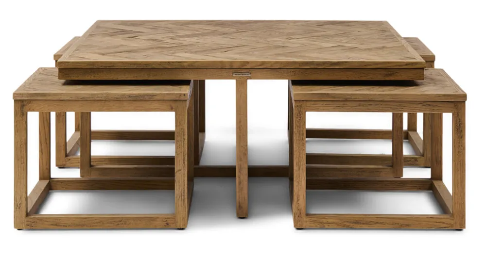 Rivièra Maison Vierkante Salontafel|Salontafel Harbour Island Eikenhout, Set van 5 stuks