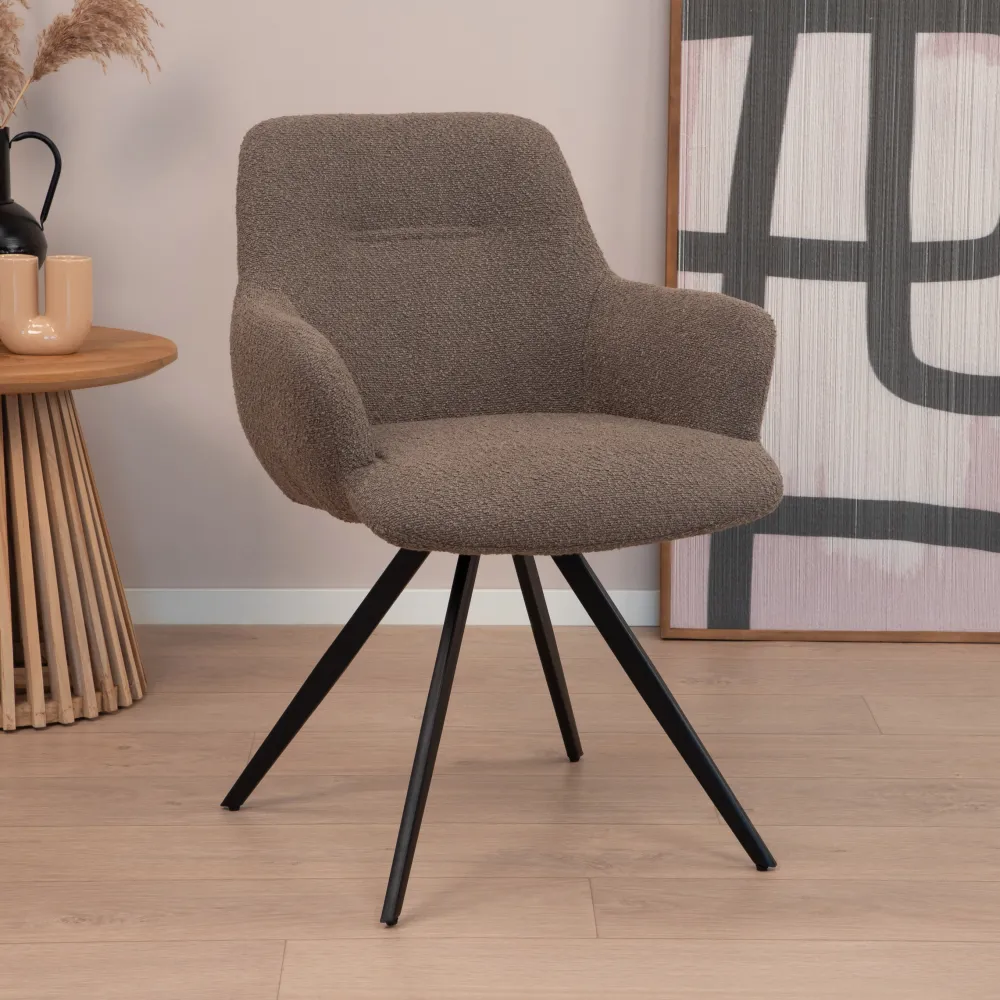 Sohome Beige Eetkamerstoelen|Eetkamerstoelen Bouclé / Teddy|Draaibare Eetkamerstoel Aimée Bouclé