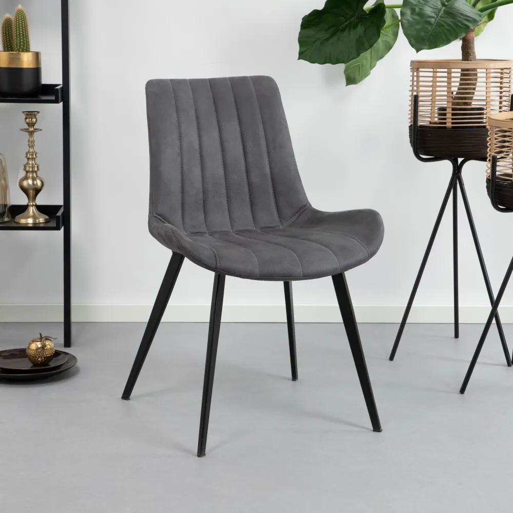 De eetkamerstoel ‘Eljas’ heeft een prachtig modern design. De zitting is bekleed met een zachte textielstof. De stof in combinatie met de opstaande randen zorgen voor een comfortabele zit. Zo kun je urenlang blijven natafelen. De gestikte verticale naden op de rugleuning en het zitvlak geven de stoel een stijlvolle touch.