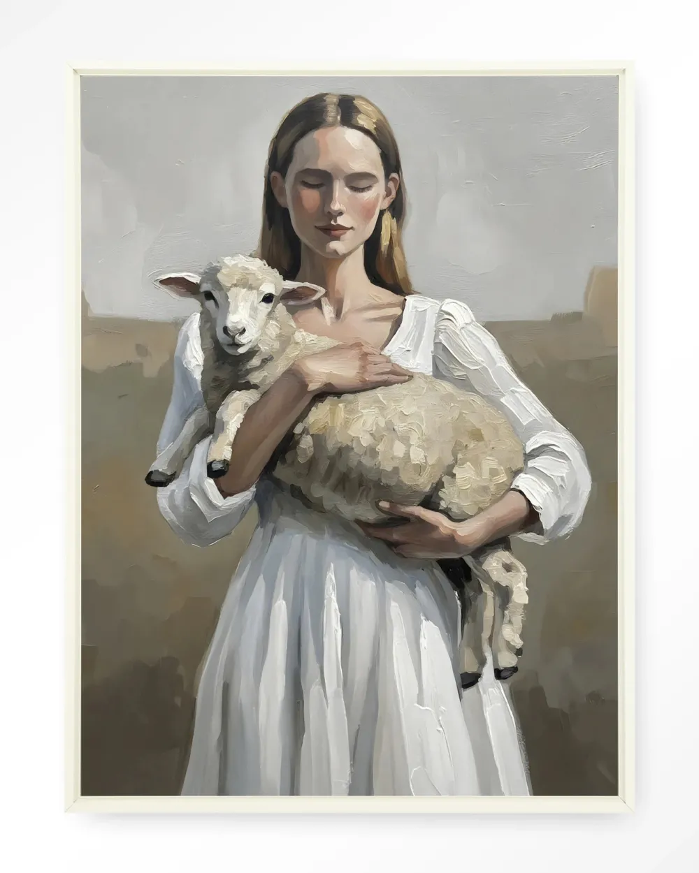 Urban Cotton Wandkleden|Wandkleed Baby Sheep in maat en frame naar keuze