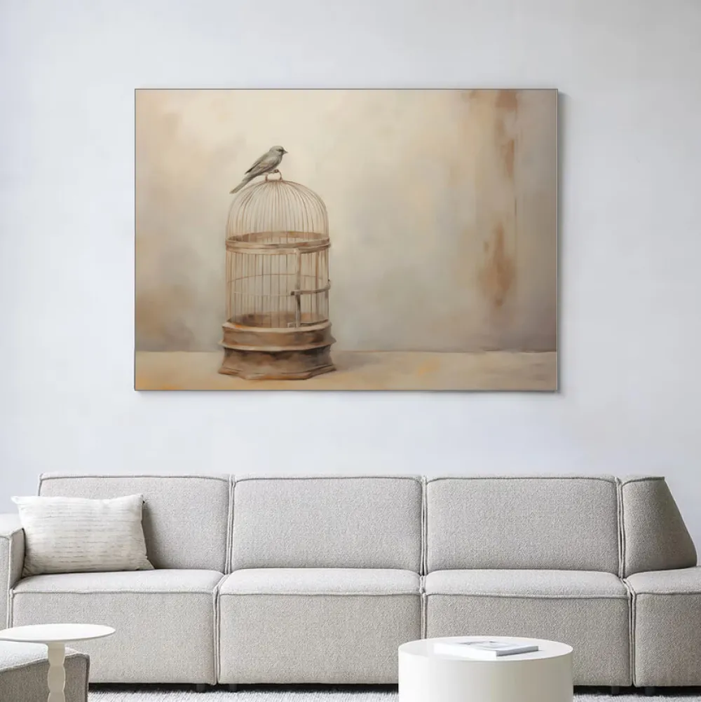 Urban Cotton Wandkleden|Wandkleed Birdy in maat en frame naar keuze