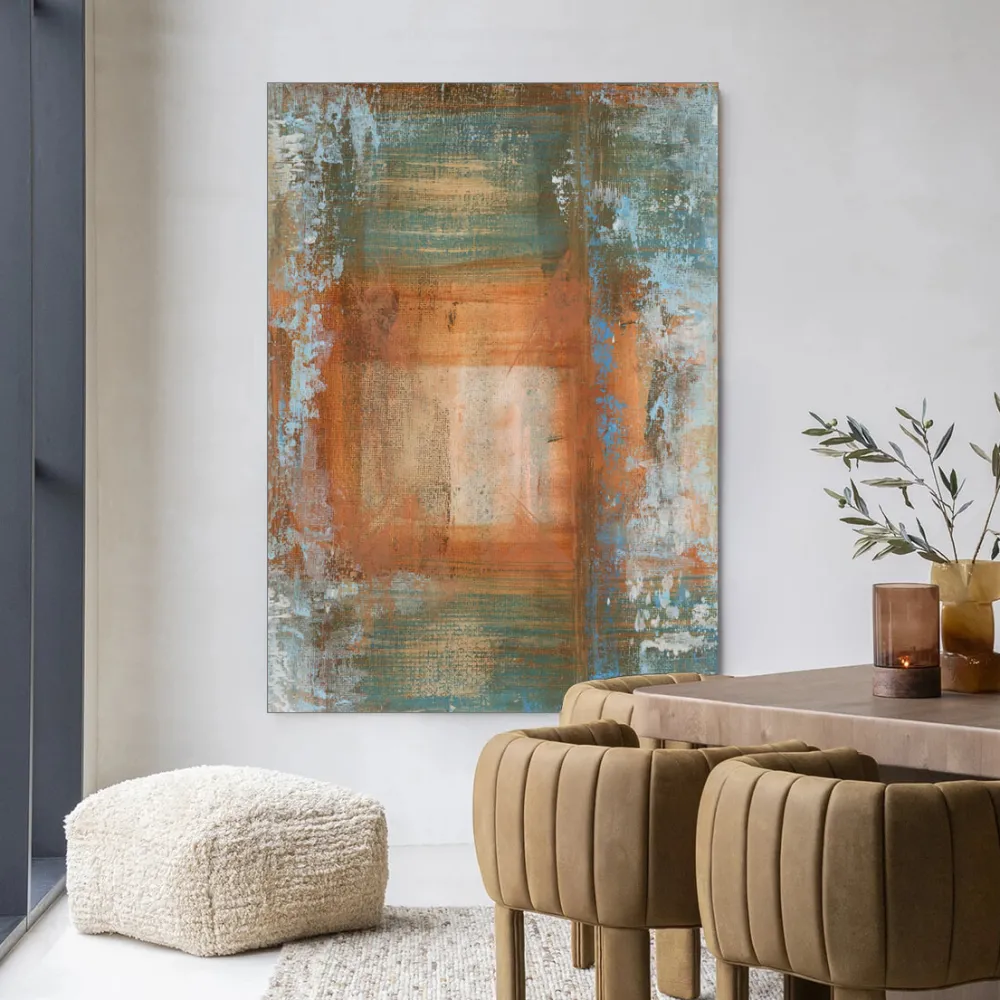 Urban Cotton Wandkleden|Wandkleed Blue Ocker Abstract 1 in maat en frame naar keuze