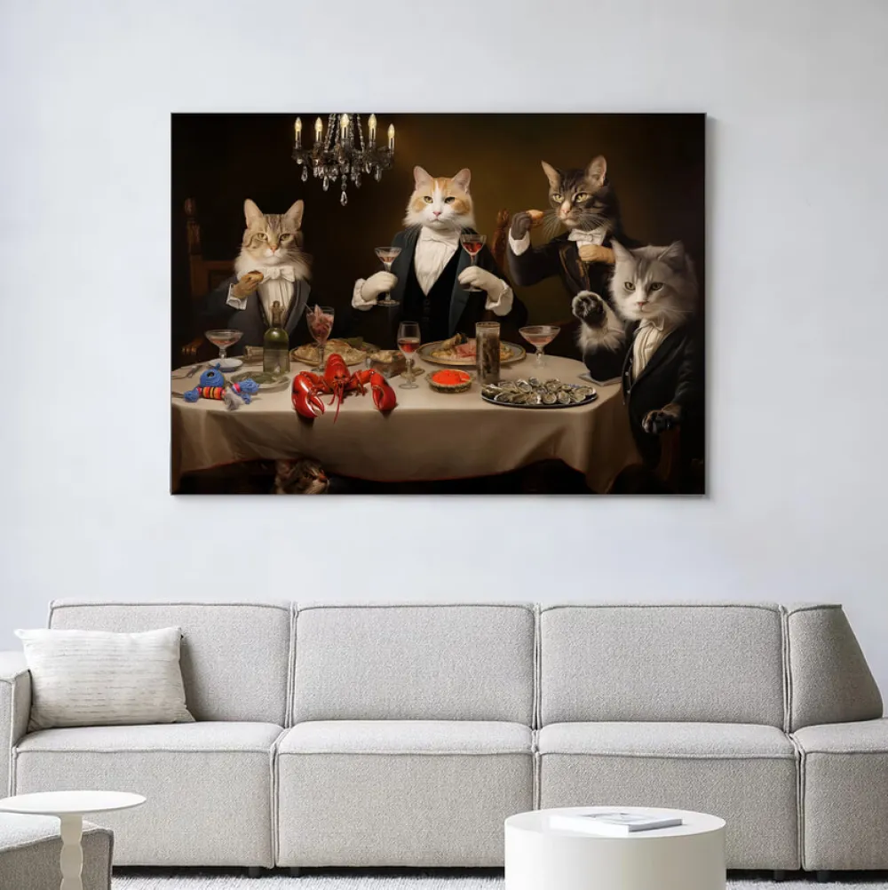 Urban Cotton Wandkleden|Wandkleed Cat Supper in maat en frame naar keuze