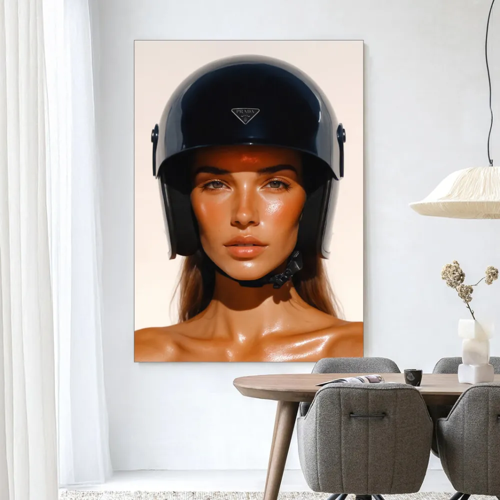 Urban Cotton Wandkleden|Wandkleed Prada Helmet in maat en frame naar keuze