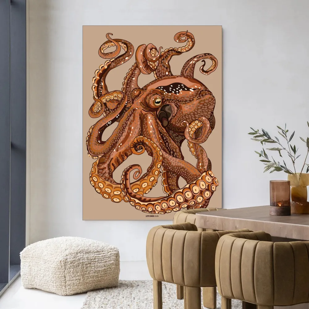 Urban Cotton Wandkleden|Wandkleed Pulpo in maat en frame naar keuze
